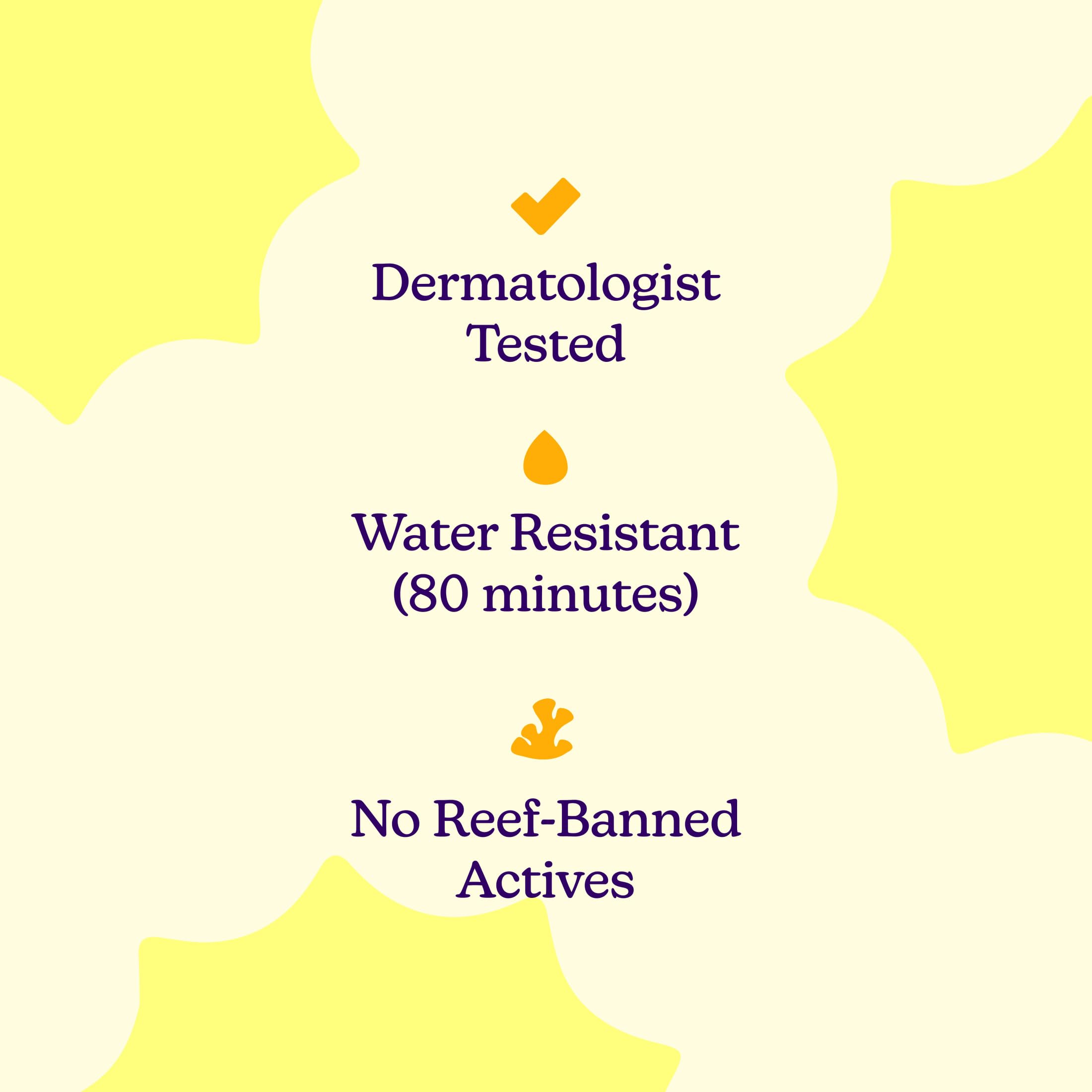 - Water Resistant for Active Play: Dermatologist tested and water resistant for up to 80 minutes which is ideal for pool days, beach days, and outdoor play.